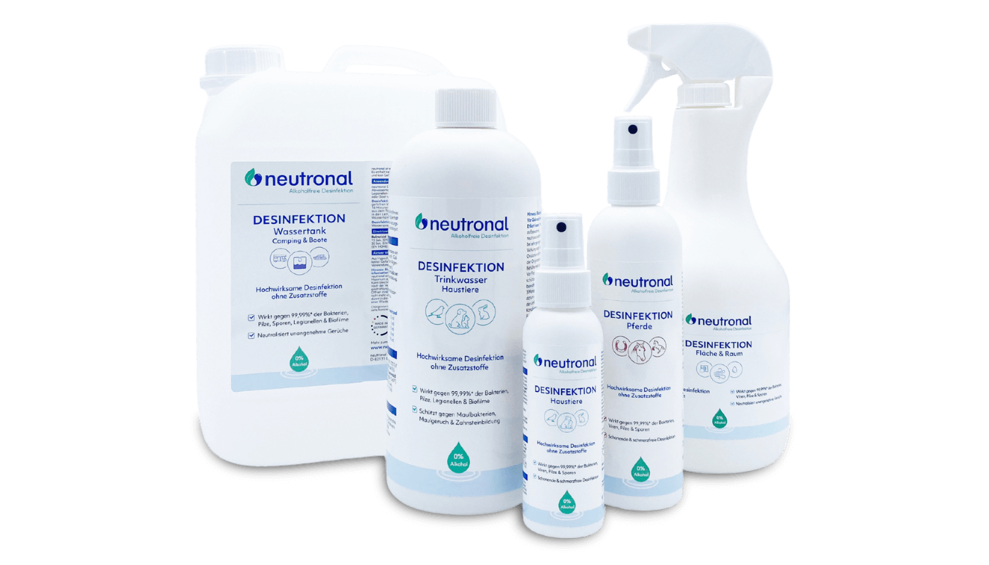 Krankheiten, Missempfindungen, Entzündungen oder Hautirritationen Ihres Tieres werden zum großen Teil von Bakterien, Viren, Pilzen oder Sporen verursacht. neutronal entfernt diese Keime zuverlässig auf der Haut, im Fell und auf Pfoten sowie in Futter- und Wassernäpfen, Käfigen, Ställen & Boxen, Spielzeugen und sonstigen Utensilien. Zur Gesunderhaltung und zum Schutz Ihrer kleinen und großen Lieblinge.